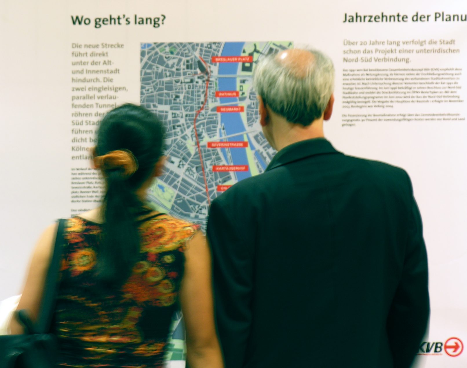 Informationstafeln für Reisende über den Kölner Tunnelbau