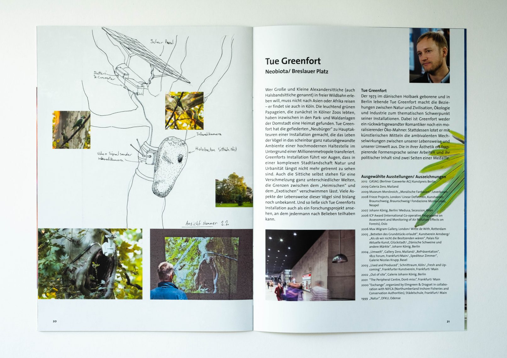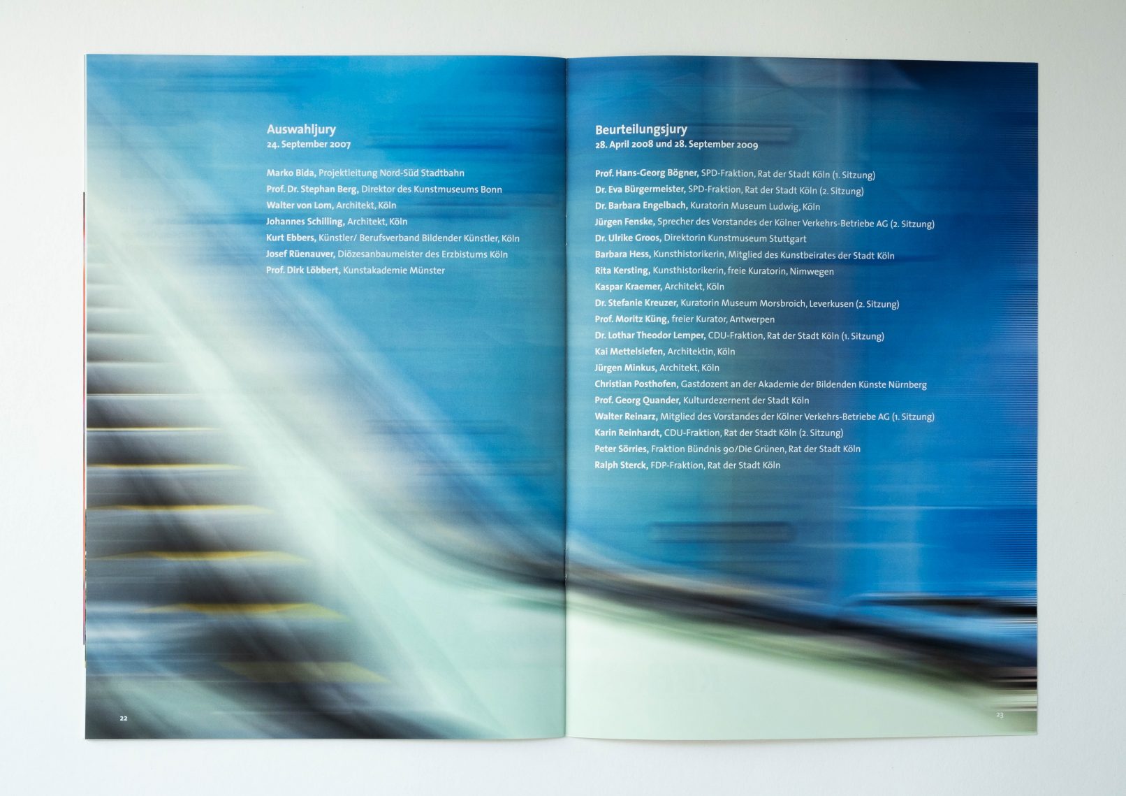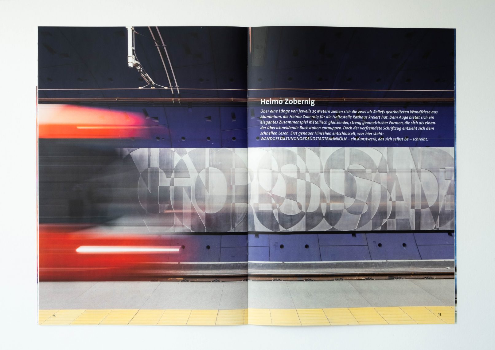 Diese Broschüre macht transparent, nach welchen Kriterien Künstler für diese Aufgabe ausgewählt wurden. Dokumentiert wird, wie die Kunstwerke konzipiert wurden, wie sie den neuen Haltestellen ein jeweils einzigartiges Gesicht geben und mit den ein- und aus- und umsteigenden Fahrgästen interagieren.