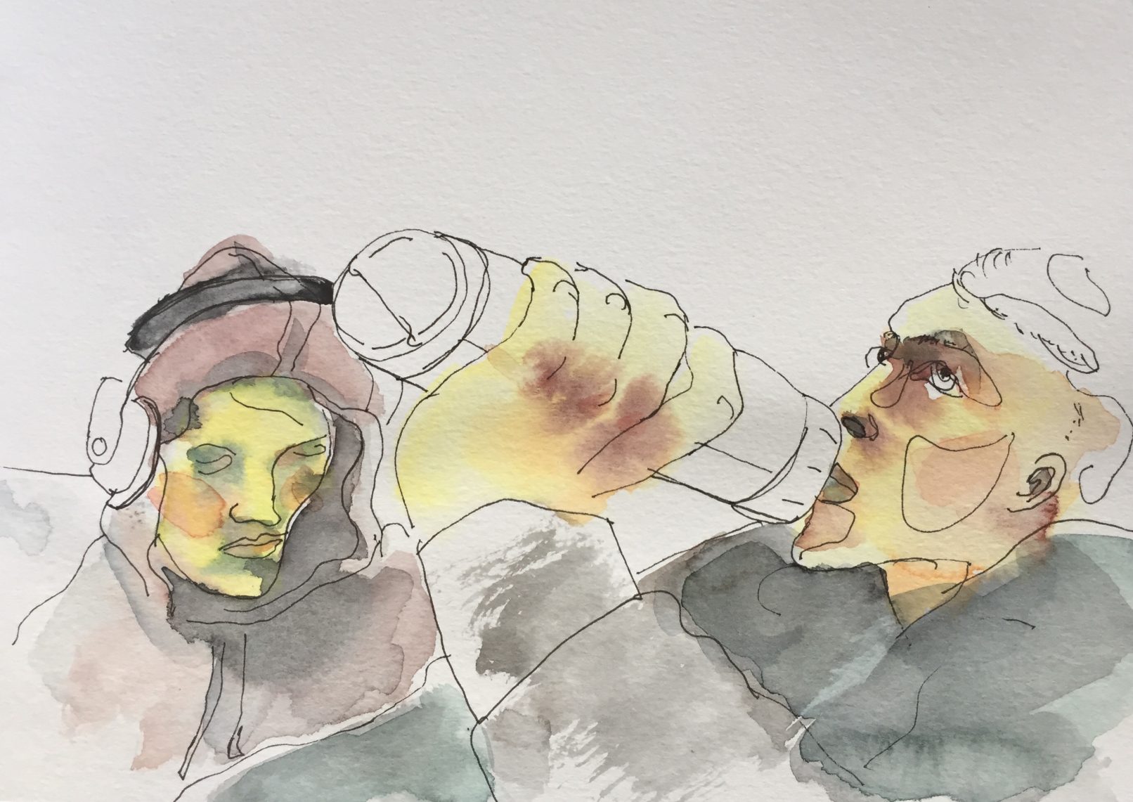 mit Fineliner und Aquarellfarbe. Entstanden im Kölner Bürgerhaus Stollwerk bei den „Menschenmalern“